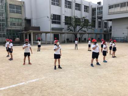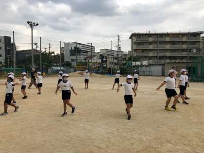3・4年合同で、団体演技の練習をしました。