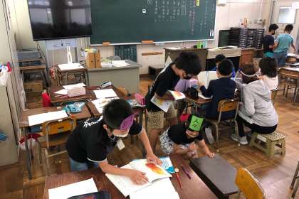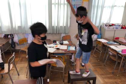 明日の本番に向けて、役割を決めて音読劇の練習をしました。