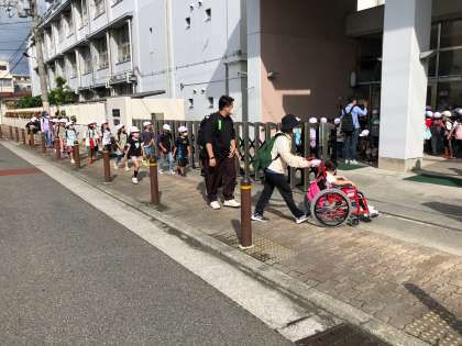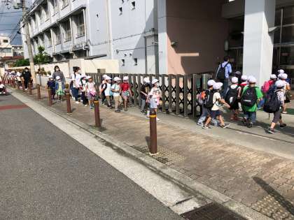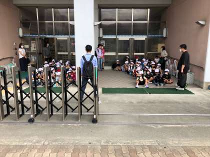 「ただいま」無事、帰校しました。園内をけっこう歩いたので、少し疲れたようです。
