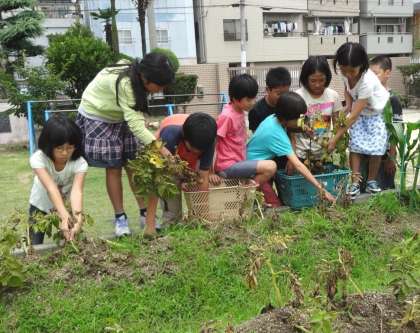 上段:学習農園でいも堀り。小さないもが多かったですが、たまに大きなものもありました。