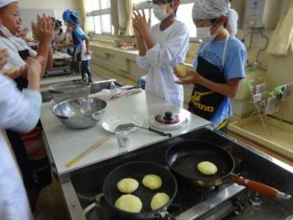 学習農園で育てたじゃがいもでいももちを作って食べました。とってもおいしくて他学年の先生にも大好評でした。