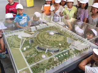 近くにありながらなかなかくわしく知らない中央体育館。職員の方に裏側のところまで案内していただきました。放送設備室にも入らせていただきました。たくさんの方が働いている様子がよくわかりました。