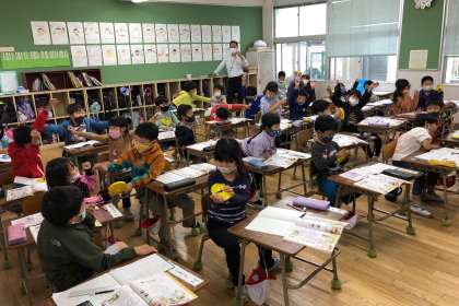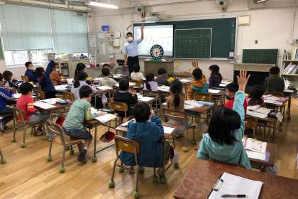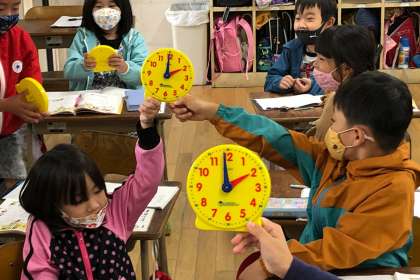 スクールアドバイザーの先生に1年の算数科の時計の授業を見ていただき、指導者の先生へのアドバイスをいただきました。