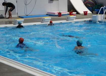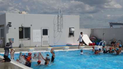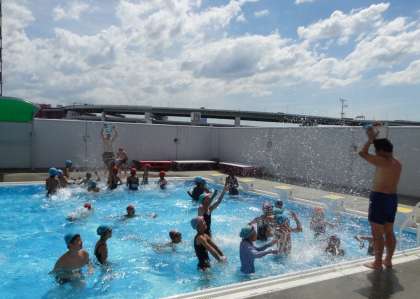 5・6年混合で4チームに分かれて、水泳大会をしました。午後の日差しで屋上プールも暑かったです。