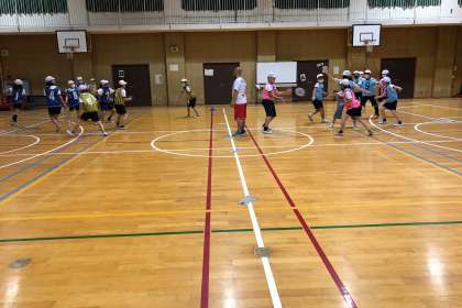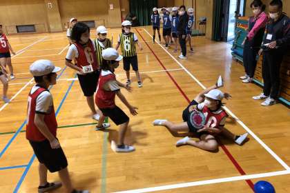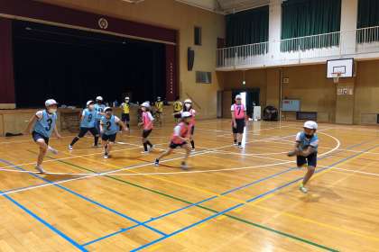今日は、小中連携の一環として、港中学校の先生がお二人、5年生の体育科の授業を見学に来られました。