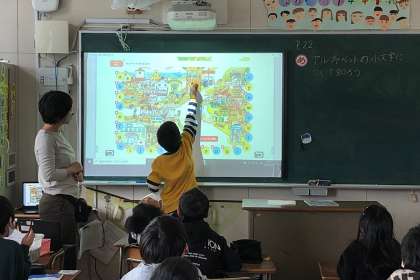 教科書の絵の中から、アルファベットの小文字を探す学習をしました。