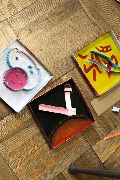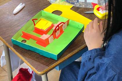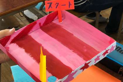 コロコロコロガーレ ビー玉を転がすコースを作っています。