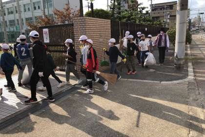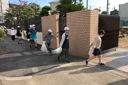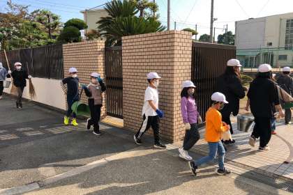 地域の公園の清掃に行ってた、たて割班が帰ってきました。