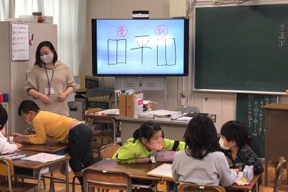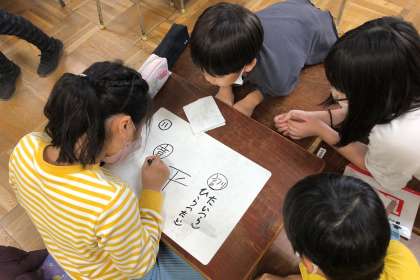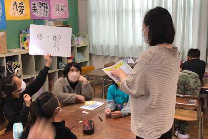 漢字の音訓それぞれの読み方を、班で考えました。
