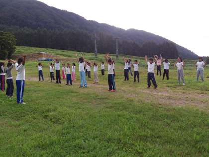 下段:今朝もおいしくいただきました。みそ汁のお鍋がからっぽの班もありました。