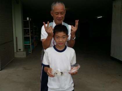 中段:宿舎でミヤマクワガタ(メス)を発見しました。