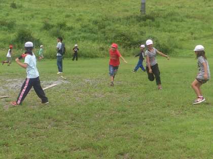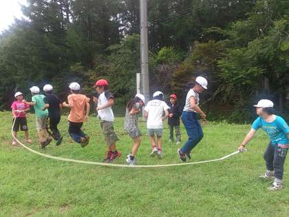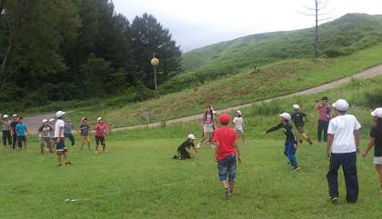 広々とした高原で、鬼ごっこ・大縄跳び・ドッジボールをしました。思いっきり走り回ることができました。