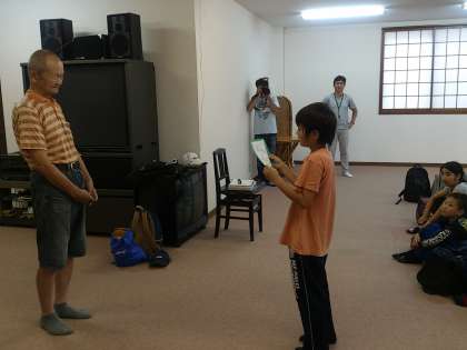 下段:3日間お世話になった宿舎の方にお礼を言いました。