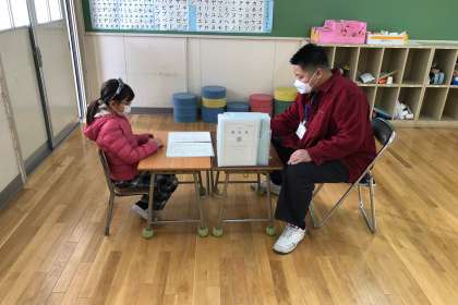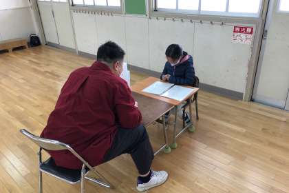 一人ひとり担任の先生から説明を聞いて通知表をもらいました。