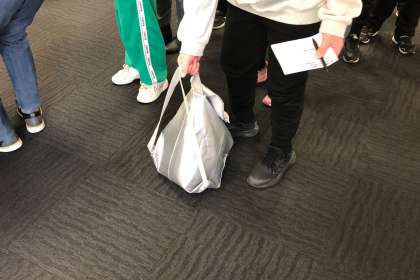 約15kgの非常用災害持ち出し用のリュックを持ってみました。