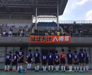 前半先制されが、取り返し1対1で後半へ。八幡屋が逆転のゴールを入れたが、終了5分前にPKで同点にされ、さらに終了間際に再逆転ゴールを入れられ、2対3で負けました。