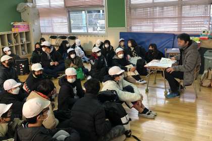 朝の学活で、担任の先生から今日の目的や注意を聞きました。