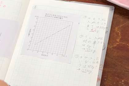 2つの量の関係を、折線グラフをに書いて調べる学習をしました。