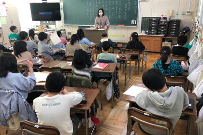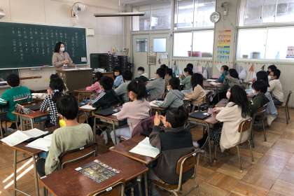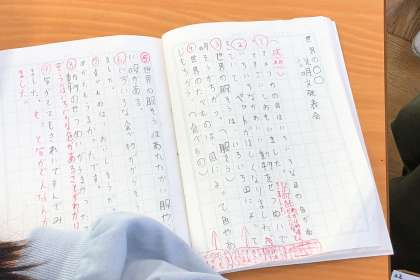 昨日行われた世界の○○の説明文の発表の続きをしました。聞いている子どもたちは、感想を書きました。