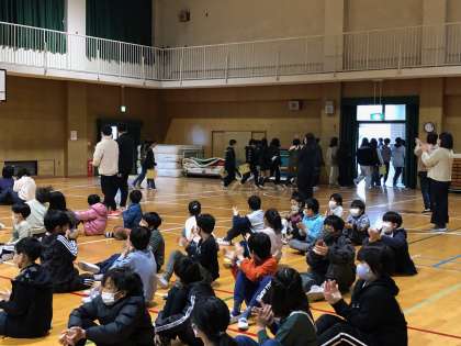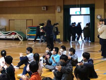 本日、1時間目に卒業を祝う会を行いました。在校生からの動画によるお祝いメッセージ、卒業生からの在校生に向けてのメッセージ、卒業生と在校生とのプレゼント交換などをしました。