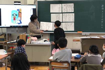 ゆうすげの村の小さな旅館の学習で、美月がウサギとわかるしかけを、各班で見つけ出しました。