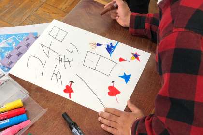 版画の合間に、班ごとに修了式までのカウントダウンカードを作りました。