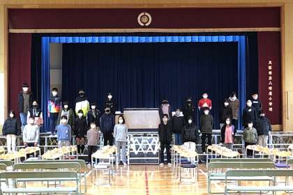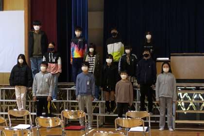 卒業式での呼びかけと、歌を練習しました。