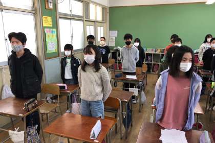 教室にて、呼びかけの練習をしました。