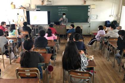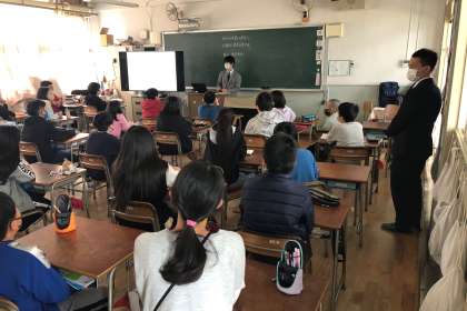 キャリア教育の一環として、府立農芸高校の教頭先生と生徒さんが来てくださって、農芸高校の紹介をしてくださいました。