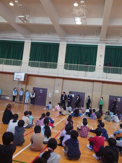 4月10日(月)、新しく八幡屋小に加わった教職員を紹介し、着任式と始業式を行いました。