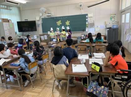 すいせんのラッパの音読劇をしました。役になりきって大きな声で発表することができました。