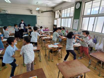 2拍子と3拍子の違いを感じながら、音楽に合わせて、手遊びをしたり体を動かしたりしました。