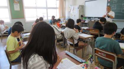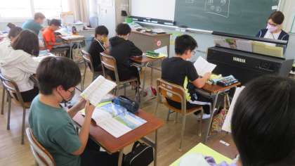 月末にある音楽集会に向けて、6年生は歌を歌ったり、リコーダーの練習をしたりしました。