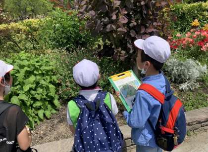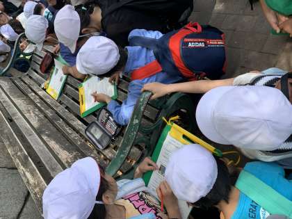 公園の中にあるヒントを頼りに、夢中になって取り組んでいました。