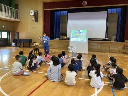 西部環境事業部の方に来ていただき、ごみのゆくえについて、楽しい劇による学習がありました。地球温暖化を進めないためにごみの分別をする大切さを知りました。