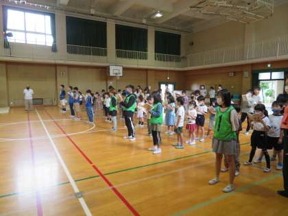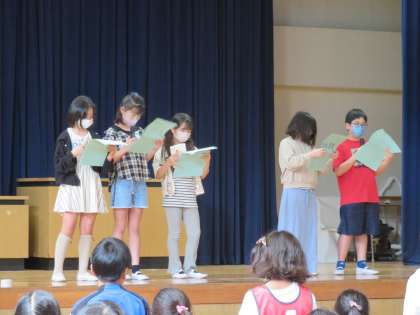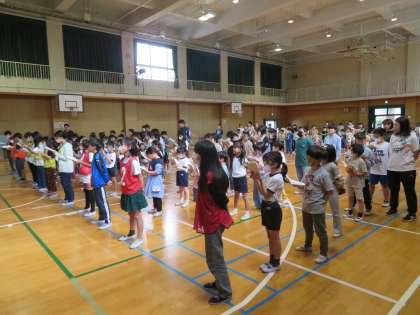 今日は、縦割り班の“キッズチーム”で集合し、みんなでなかよく合唱しました。