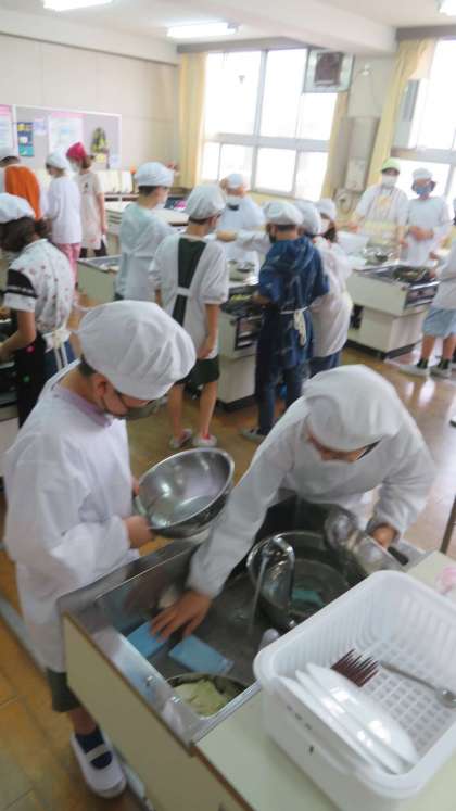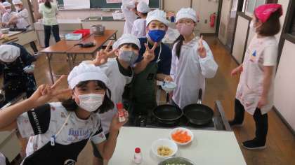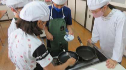 調理実習で、野菜炒めを作りました。火の通りやすいように野菜の切り方や、野菜を入れる順番を考えるなどして、班で協力して調理を進めました。