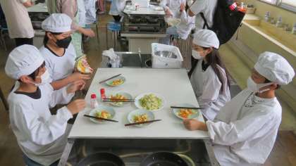 調理が終わってからは、各班で盛り付けをしていただきました。「おいしい!」「また作りたい」と嬉しそうに子どもたちは振り返っていました。