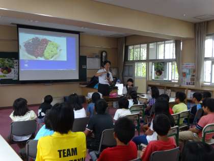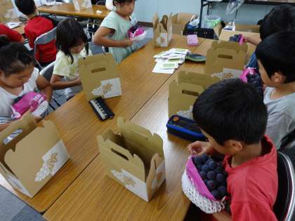 ぶどうや果物についてや山梨県についての学習をした後、JAグループ山梨からいただいたぶどうの箱詰め作業やぶどうの味比べや糖度の測定などを教えていただきました。