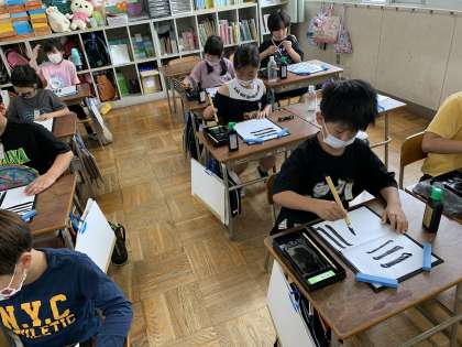 ・今日は初めての習字の授業でした。筆の使い方を学びました。