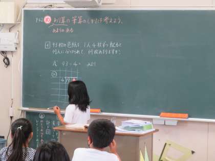 あまりのある割り算の筆算の解き方と、たしかめ算の方法について学習しました。