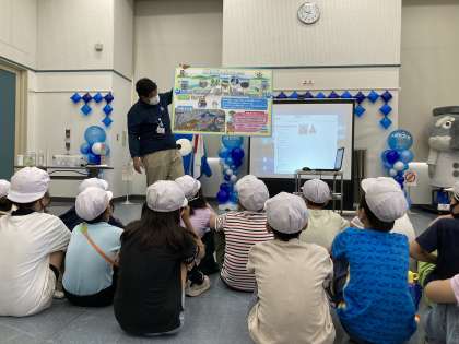 4年生は、柴島浄水場へ社会見学に行きました。淀川の水がだんだんきれいになっていく様子を見学したり、ろ過の実験をして水がどのようにきれいになるのかを観察しました。