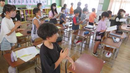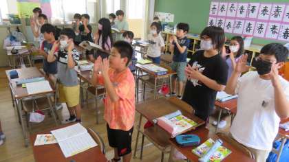 授業の様子です。きれいな歌声で歌うことを意識しながら、手話を交えて楽しく歌っていました。