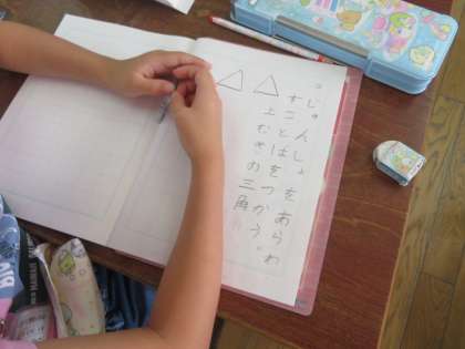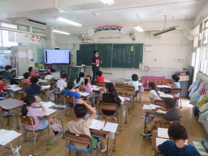 「はじめに」や「つぎに」というような、説明するときに使う言葉を使って絵を伝える学習をしました。