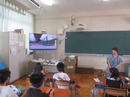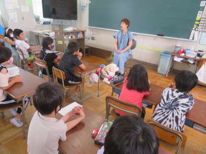 視覚障がい者学習で盲導犬を連れていろんなことを子どもたちに教えてくれました。