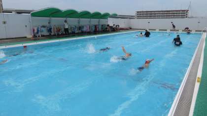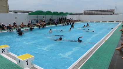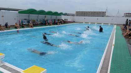後半には早速25メートルを泳ぐ練習もしました。子どもの泳力に合わせて取り組んでいます。
