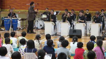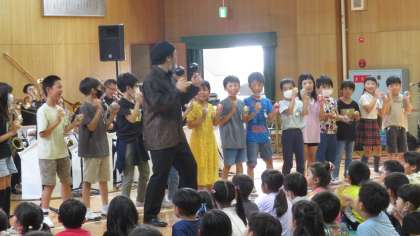 6月28日(木)Sound Factory Jazz Orchestraのみなさんが、JAZZの演奏を聴かせてくださいました。とてもおしゃれでかっこいい演奏に、子どもたちもノリノリでした。4年生の児童が、ビックバンドに合わせて「茶色の小瓶」や「サンバ・デ・オルフェ」を演奏しました。とても貴重な体験をすることができました。