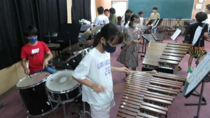 5年生は音楽の学習で「リボンのおどり」の合奏に取り組んでいます。楽譜と指揮のリズムを確認しながら、みんなと音を合わせて演奏することに「全然合わへんな」「ちゃんとリズムをとらんときれいな音にならへんな」と子どもたち中心で練習をしていました。