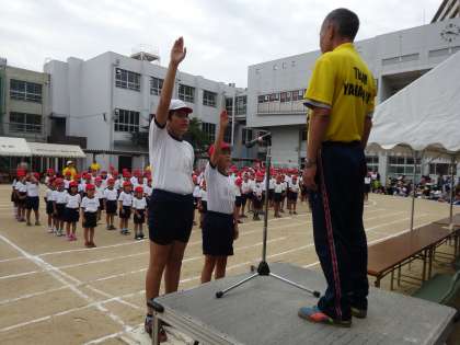 夜中に降った雨のおかげでちょうどいいコンデションになりました。天候に恵まれた、すばらしい運動会になりました。
