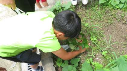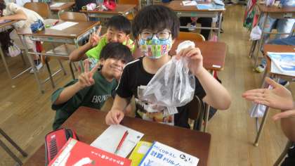 6年生は植物の水のゆくえについて学習しています。葉や茎の部分にビニール袋をかぶせ、様子を観察しました。